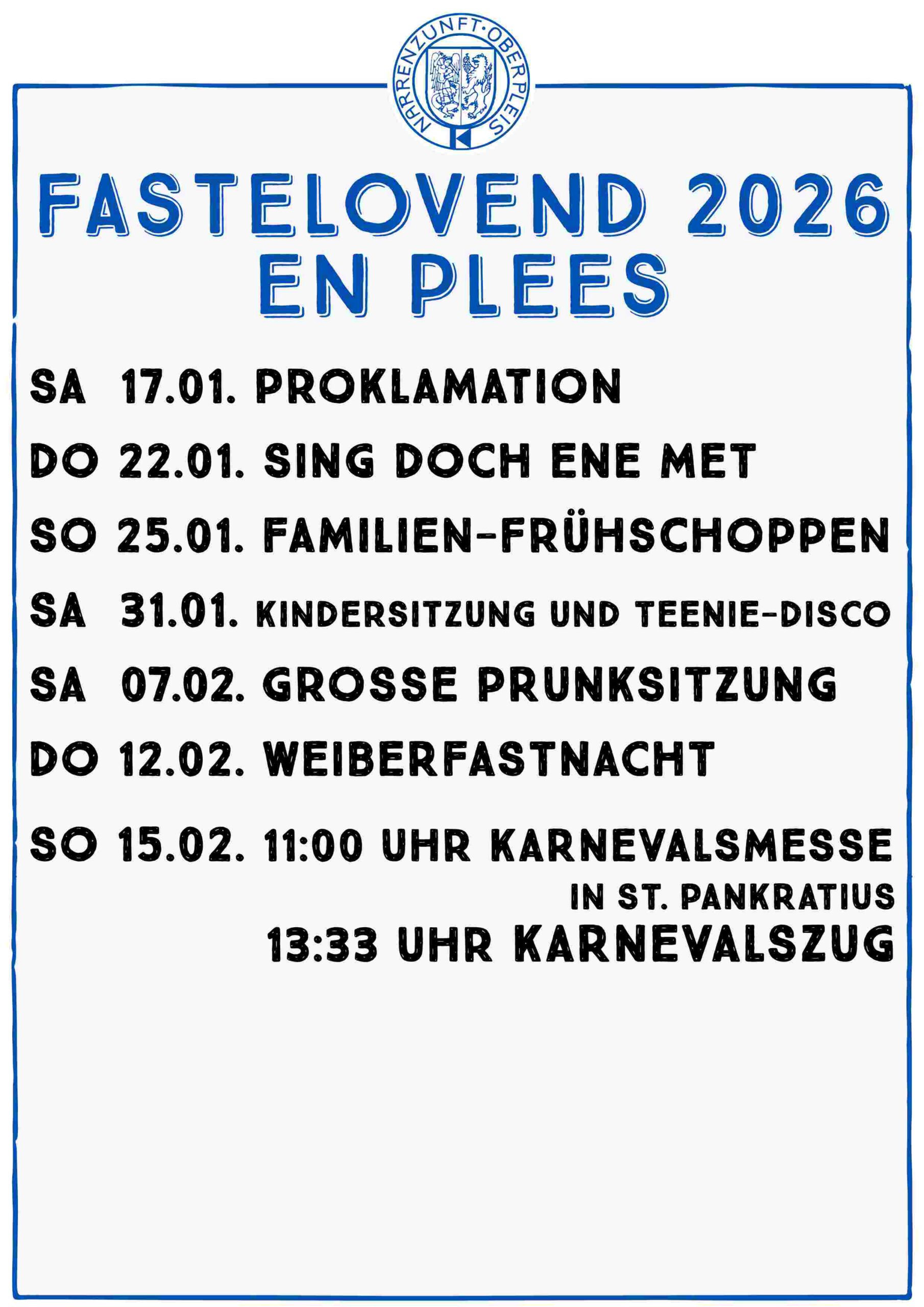Auch für die kommende Session haben wir wieder ein kurzweiliges und abwechslungsreiches Programm zusammengestellt. Der Vorverkauf startet am 13.12.25 ab 10 Uhr in der VOLKSBANK Filiale in OBERPLEIS!