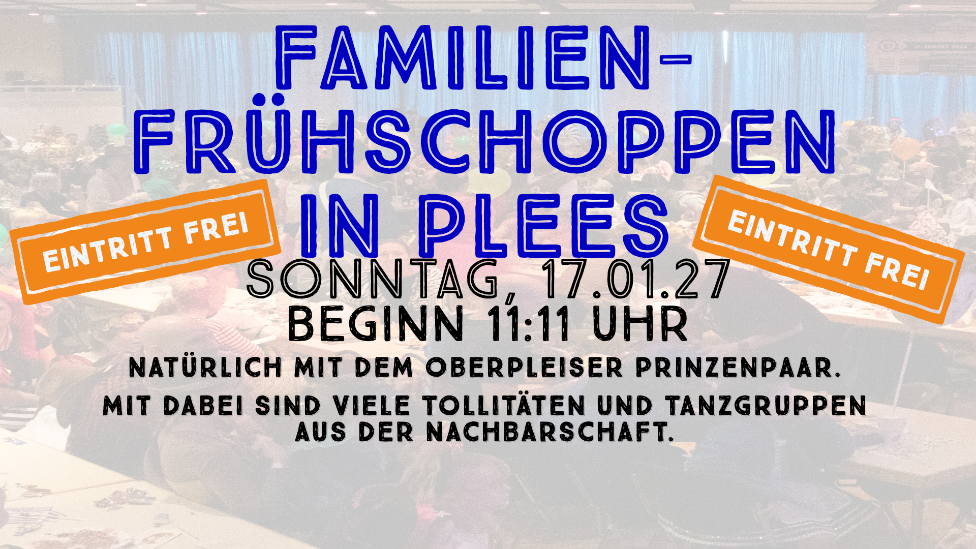 Dieses Jahr neu im Oberpleiser Karneval! Der „FAMILIEN-FRÜHSCHOPPEN IN PLEES“ Natürlich mit dem Oberpleiser Prinzenpaar den Tollitäten und Tanzgruppen aus der Nachbarschaft.